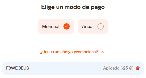 AÑADE EL CÓDIGO PARA OBTENER 25€ DE DESCUENTO